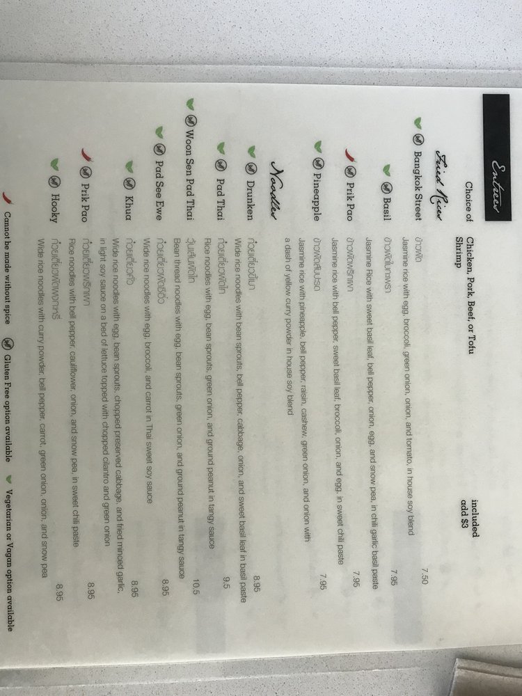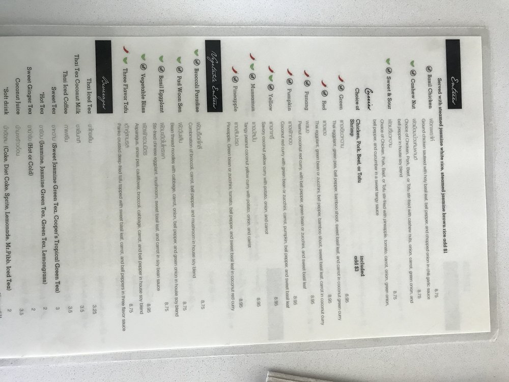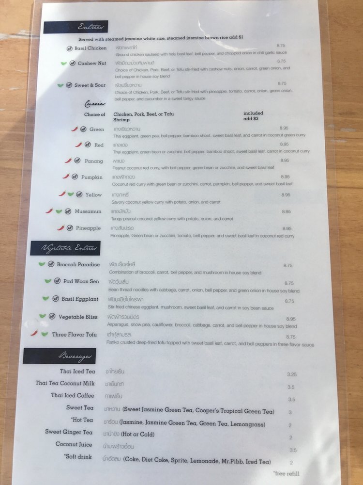 Choice of Chicken, Pork, Beef or Tofu stir-fried in shrimp based chili paste with green bean, bell pepper, carrot, and kaffir lime leaf.